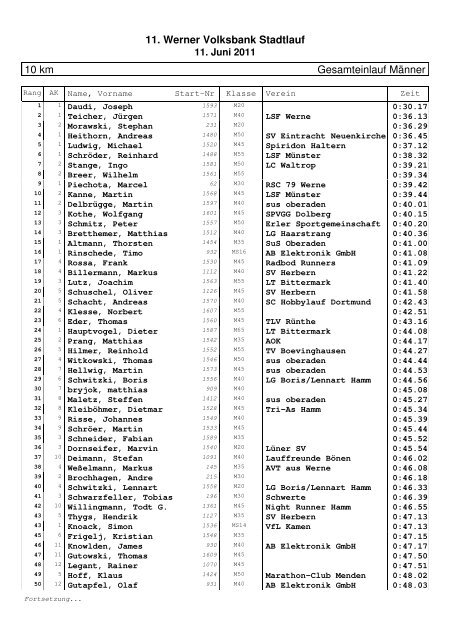 Ergebnisliste 10 Km Leichtathletik Tv Werne 03 Ev