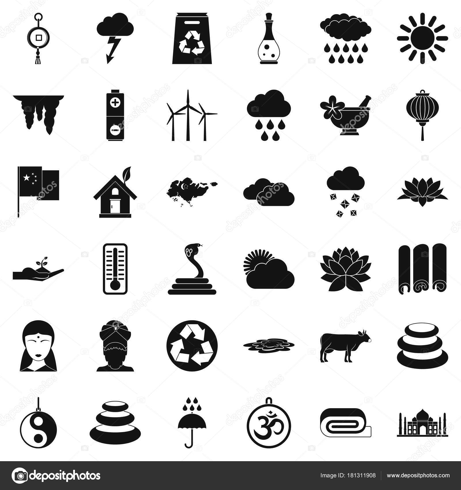 Asian Type Icons Set Simple Style Stock Vector C Ylivdesign